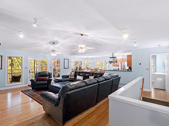 Discover the ultimate self-sustaining 4BR, 2.5BA private mountain retreat on 4.11 acres in beautiful Blue Ridge, GA. Located just half a mile from 200+ acres of U.S. Forest Service land, this rare property offers total privacy, a serene pond fully on the property, and year-round frontage on Callahan Branch — a bubbling stream you can hear from the covered deck. A greenhouse, manicured open spaces, and surrounding hardwoods create the perfect blend of natural beauty and practical self-reliant living. Whether you're seeking a full-time residence or a peaceful mountain escape, this property is built for comfort, independence, and endless possibilities. The main level features a generous master suite, an inviting open great room, dining area, and a well-appointed kitchen with pantry and nearby laundry. The terrace level includes two additional bedrooms, a full bath, and a versatile sunroom ideal as a fourth bedroom, home office, or creative space. A spacious family/game room adds even more flexibility, and the terrace-level two-car garage includes a dedicated workshop perfect for tools and hobby projects. Enjoy multiple porches and expansive decks overlooking the creek, pond, lawn, and wooded surroundings. Two insulated steel outbuildings elevate the property further: a 24x24 building with mini-split HVAC and an attached 20x20 concrete-pad carport, plus a massive 24x85 freestanding garage with electric, ideal for equipment, storage, or business use. The freestanding garage accommodates four or more vehicles, and the greenhouse supports year-round growing. Opportunities like this are rare—acreage, water features, privacy, and highly functional outbuildings all just minutes from downtown Blue Ridge. Whether you're seeking a full-time home, second home, or income-producing vacation rental, this self-sustaining mountain haven is the one. Don't delay, come take a look today!