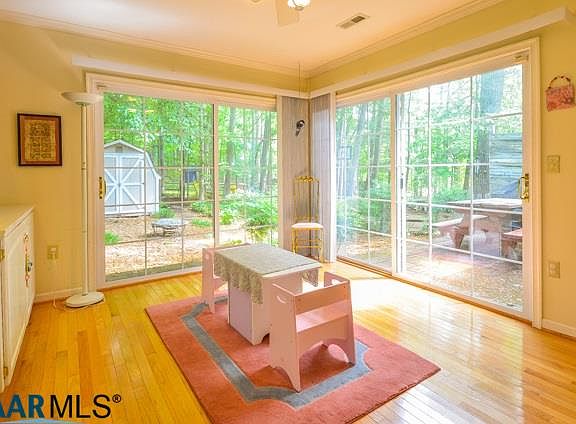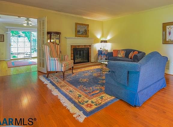 Enjoy the peaceful wooded back yard from the patio & the delightful sunroom of this extensively remodeled attached home in convenient Wynridge, located minutes from schools, parks and shopping at Barracks & Stonefield. A cheerful breakfast room with bay window & a built-in office system adjoins the fully remodeled kitchen. Completed in 2014 with maple cabinets, cork flooring, solid surface counters, mosaic tile backsplash, French door refrigerator, Bosch dishwasher, built-in microwave, range w/radiant cooktop and built-in office, the kitchen sparkles. Other enhancements include fully remodeled bathrooms; double hung tilt sash windows throughout; hardwoods upstairs; Quest piping removal; security system; new roof...Move in, relax and enjoy!