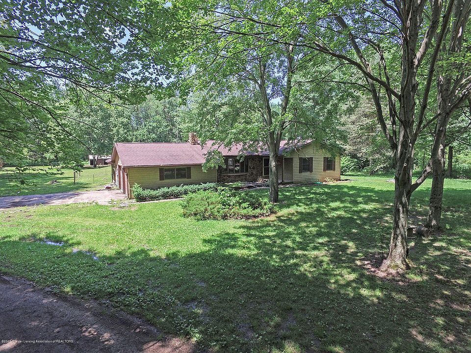 REDUCED $ HOBBY FARM IN OLIVET SCHOOLS-Beautiful 3BR/3BA Ranch on 9 acres in Charlotte. The best of both worlds! Home sits back off road & feels very secluded yet is located close to shopping, restaurants & highways for easy commutes. This hobby farm features a huge barn with a 30x45 two car workshop, attached 32x48 pole barn plus a 16x20 kennel w/new roof in 2019. Property also has 3 more animal outbuildings w/electric fencing & large pond. All on a spectacular, wooded lot. Home highlights include large living room w/fireplace, Master Suite w/his & hers baths one of which is 14x15 in size & has a sunken tub overlooking the pond. Cozy 3 Season Room, formal dining room & spacious kitchen. Both propane & zoned electric heat options to choose from. New furnace, central air & heat pump in 2017. New water heater, softener, water filtration system & all new carpeting in 2015. Deck painted June 2019. PLUS Sellers will be installing a brand new metal roof on the home prior to closing