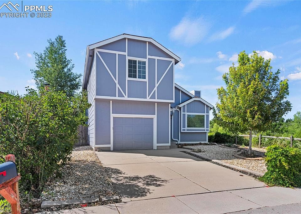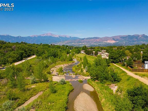 What a location to call home! This well maintained home boasts year round views of Pikes Peak, direct access to Cottonwood Creek Trail and Park and borders an open space triple-lot owned by the city. This is a great opportunity to surround yourself with the natural beauty of Colorado while tucked into the heart of the city. Currently 2-bedrooms, but would be very easy to convert back to a 3-bedroom house by adding a wall in the front bedroom. The high-vaulted ceilings make this home feel MUCH bigger than the 1060 square feet. Lovingly maintained and move-in-ready, this home will not last long. Oversized 1-car garage, open floorplan main level, private back yard with covered patio, so many great features in an efficient package.