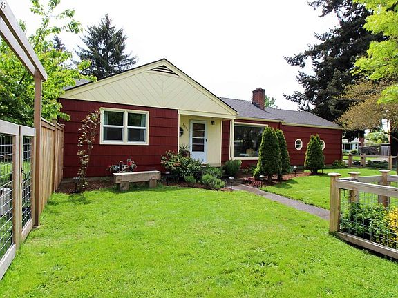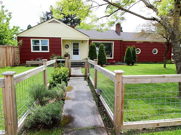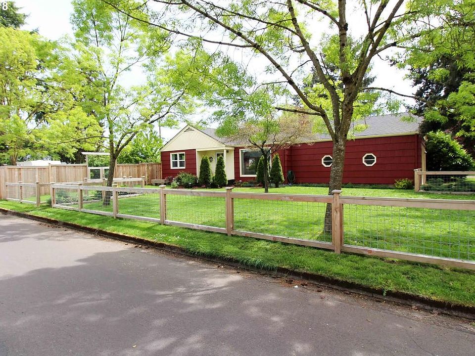 Quarter acre urban homestead!Corner lot,enclosed garden area with mature fruit trees:2 pear,2 plum,1 cherry,1 apple.Mature grape vines.Chicken coop-owner willing to include 6 laying chickens,4-8 eggs daily!Fully fenced front and back yard with new custom cedar fencing.Newer roof, brick wood burning fireplace, picture window,gleaming original hardwood floors, updated bath, updated kitchen with farmhouse sink.Unfinished bonus loft!