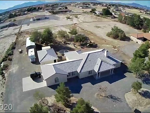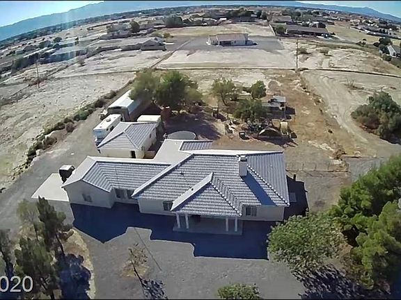 This large well maintained home is a must see! Brand new life-proof flooring throughout home, as well as brand new light fixtures, high ceiling in the living room, and fresh paint, makes this home feel like luxury in the desert. Sit outside in the spacious courtyard with entrances from the master bedroom and one guest bedroom and take in the colorful sunsets overlooking 1 acre of property perfect for a hobby farm or space for the kids to run. This amazing home boasts an attached 2 car garage, RV cover with power and dump hookups, and a bonus detached shop with 220, half bath, and roomy casita perfect for the hobby or car enthusiast. Located on the southern end of town, ideal for commuting to and from Las Vegas.