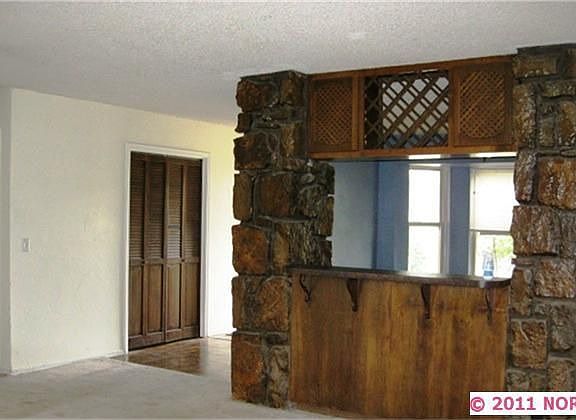 - Exterior features: Stone, Wood