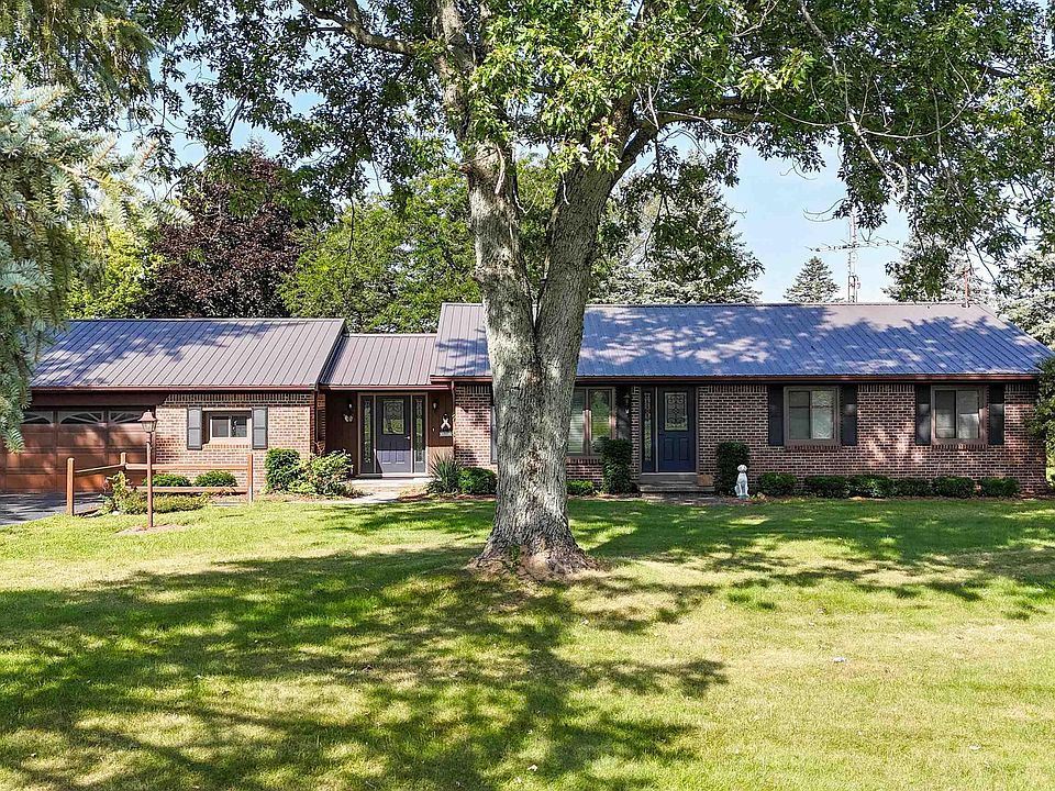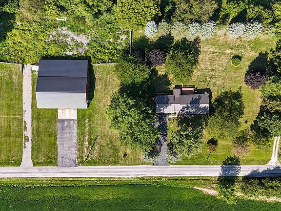 Welcome home to this peaceful country property! This 3.1 acre park like setting has a 1424 sq ft brick ranch home and a 50x80 insulated pole barn with a 24x80 lean to with 7 overhead garage doors along the back side. You can sit out front or on your back deck and watch the abundance of wildlife stroll through. This 3 bedroom, 2 bath home has a newer metal roof, windows, and kitchen appliances. All appliances including the washer and dryer remain with the home. The main bathroom has been completely remodeled including a walk in tile shower. The well was serviced in September 2023 and a new pressure tank was installed. The septic was pumped in September 2023. The pole barn is spray foam insulated and is lined with steel siding. It has separate office space, is plumbed for a bathroom, and has a paint bay with LED lighting and ventilation. There is a separate 220 amp service. A large stone lot on the back side of the barn is surrounded with a 6' vinyl privacy fence. It is an auto enthusiasts dream! This property has so much to offer. Do not wait to schedule your showing! Home inspections are welcome, but this property is being sold as-is.
