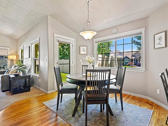 Hard to find single level home in the renowned Tuscany Village neighborhood! The community that features the best amenities in Meridian with four pools, luxury clubhouse, multiple parks, sports courts, putting green, and Siena Elementary School. Tuscany is lifestyle living defined. This well-maintained home sits on a spacious corner lot just a few houses from one the community pools. Featuring a spacious open floor plan, a large kitchen and dining area complimented by custom hard wood flooring. Plenty of counter space. The living room boats a vaulted ceiling design w/a corner gas fireplace, many windows for natural light. A large Master Bedroom w/spacious Master Bath & Closet. 2 Additional rooms are gracious in size and storage. Enjoy the East facing backyard and covered patio. Close to shopping, dining, the new YMCA and with incredibly easy, quick access to I-84. This home is priced to sell and will go quickly. Come check this beauty out at the open house Sat 7/15 from 11-2:00pm, or Sun 7/16 from 12-3pm