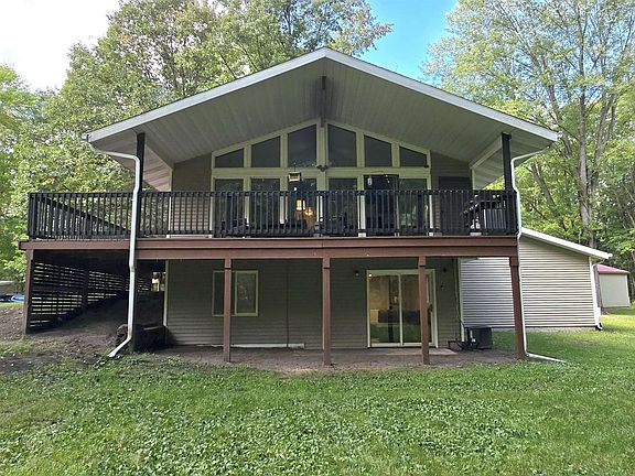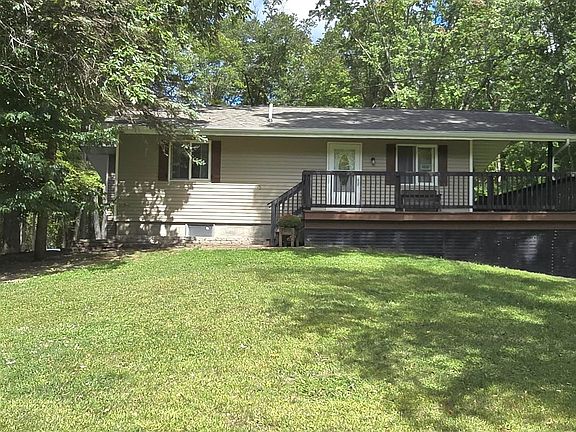 If heaven on earth exists, it's here in this home, on this property! This raised ranch 3 bedroom, 2 bath home overlooks a 1+ acre of lawn, settled in the midst of an 11 acre wooded parcel of land that is 20 minutes to Midland and 10 minutes to Mt Pleasant. This home has an open floor plan, vaulted ceilings in the living room, dining area and kitchen. The wall of windows and sliders in the living room open to the covered, wrap-around deck that overlooks the beautiful lawn. The primary bedroom has a walk-in closet that tucks in behind a long wall of the bedroom and also has a dedicated office space. In addition, the second bedroom and a full bath are also located on the upper level. The lower level includes a walk-out slider in the family room, the 3rd bedroom, the 2nd full bath, the laundry room, a bonus room and the entrance to the attached 2 car garage. Additional features include updated kitchen cabinets, new paint and trim in the bedrooms, new flooring in the lower level, a new heat exchanger in the furnace in '23, paint on the deck, new black slat panels under the deck, a 1/2 acre enlargement of the yard, and a newer roof. The 32'x40' pole barn has a 10' x 12' overhead door and is ready for all the toys. The blind stays with the property. The wall mounts/TVs, play structure, freezer, generator, and the shed behind the barn will not stay. Call for your personal showing today!