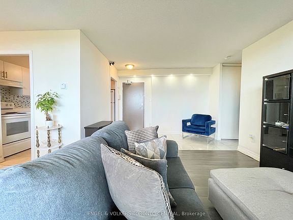 Mesmerizing Sun-Filled Corner Condo. Breathtaking Spectacular South Views Of City Skyline. 2 Bedrooms With Endless Closet Space. Open Concept Dining/Living Room, Kitchen With Breakfast Bar. Enjoy Your Private Balcony With South Exposure. 1 Underground Parking Space . Steps To Park, Playground, Schools, Stores, Public Transportation, Highway 400. Building Amenities: Concierge, Gym, Indoor Pool, Sauna, Security Guard, Visitor Parking.