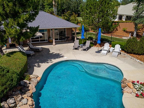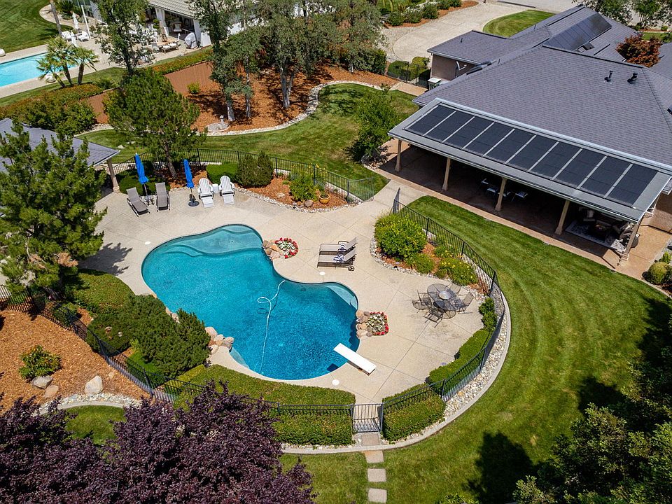 A true must-see offering, this stunning home in the Wimbledon Estates neighborhood will not disappoint. It has it all. The main house boasts over 2800 sq. ft. of truly livable space. Then walk out to the stunning waterfall-enhanced Guiton pool where you will be the entertainer of the summer. The adjoining pool house (560 sqft,) has its own kitchen/bathroom/laundry so you can easily accommodate guests in style. And between the attached 3 car garage plus the detached garage/shop with its own gated entrance and full RV hookups, there is so much room for all of your toys. The fully landscaped yard and covered patio will make you realize that being outside is just as comfortable is being inside. Owned solar completes the big-ticket items this dream home has, so how can you resist?