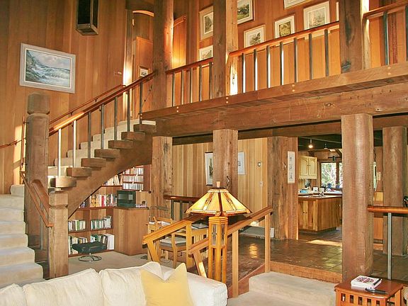 This home (featured in Architectural Digest) is the most exceptional of the ''bridge timbered'' works of art designed and built by David Clayton. As his personal residence he selected only rare and massive beams for it's construction. Certainly a one of a kind home which will never be duplicated. With soaring open beamed ceilings, a massive fireplace, and large windows (with some ocean views) the living room is a place of utmost comfort you won't want to leave. Lots of grand built-in bookshelves, custom doors and craftsman touches throughout. A newly re-built, detached guest house is perfect for friends or relatives. Minutes from Mendocino Village. Large open area surrounded by trees on almost 8 private acres. If you are looking for something special on the Coast this is a must see.