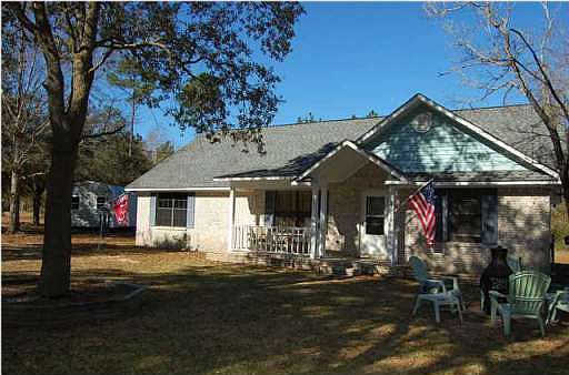 Country living at it's best! 5+- acres, a barn and a "move in ready" brick home. No wasted space with this open floor plan. Vinyl plank flooring and ceramic tile in most of the home. Kitchen and dining area are ceramic tile. Kitchen counter tops are granite. HVAC system is new, the roof is a year old, the sunroom ceiling is a year old. Barn (three sides enclosed) is roughly 32x45. Large storage shed (half finished and cooled with window a/c). Two decks on the rear are a wonderful place to enjoy the magnificent sunsets! Property is located just 20 minutes from Pensacola Navy Federal Credit Union, 12 minutes from I-65 (via CR 64). Chicken coop and chickens go with the property! *two tax parcels 341214 and 203331