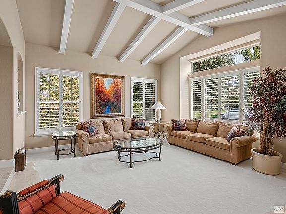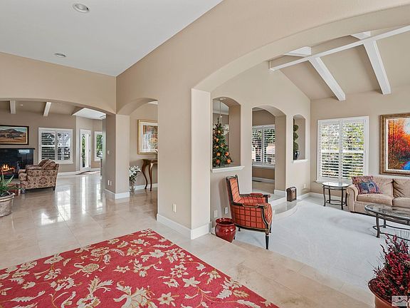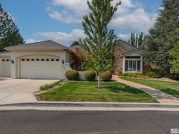 Situated in the desirable Evergreen neighborhood of Caughlin Ranch, this single-level home has been tastefully customized and is full of upgrades. Spacious rooms and high ceilings set the stage to enjoy the quality finishes such as slab granite, travertine flooring, new carpeting, ceiling beams, fully remodeled baths and all new interior paint. Sellers created new front and side patio areas to enjoy the yard with new landscaping and 24 trees added. Welcome to the Caughlin lifestyle with miles of trails!, Spacious kitchen features a large island with dramatic granite slab countertops, white cabinetry, and attractive tile backsplash. Kitchen is open to ample breakfast nook and family room with high beamed ceiling and exquisite fireplace. Plantation shutters are throughout the home. Beautifully remodeled master bath features quartz counters, marble flooring with radiant heat, newly-designed shower and a jetted tub. Master has a fireplace, ceiling fan, door to the backyard patio and a very large walk-in closet. Secondary bath has also been thoroughly updated and sure to appeal. New furnace/air conditioning and water heater, as well as a fully finished garage.