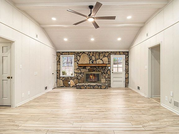 Nestled among towering pines on a massive lot, this brick ranch offers 1,519 square feet of thoughtfully designed living space. The classic front porch, spanning the width of the home, provides an inviting welcome and the perfect spot for morning coffee or evening relaxation.