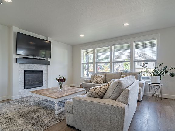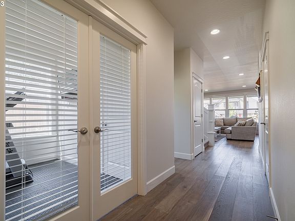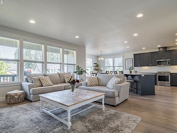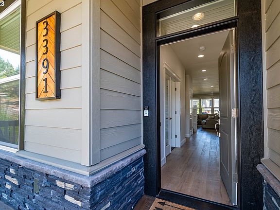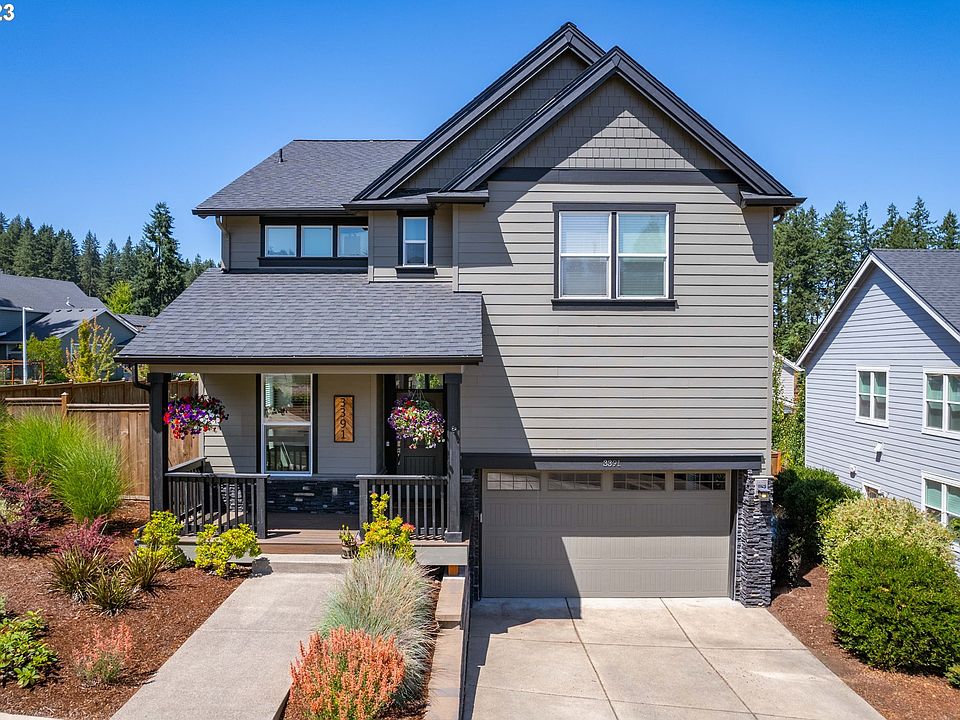 Corner Lot Contemporary Craftsman located on Vista Heights Ln, named for its panoramic valley views, is situated in coveted SW Eugene's Timberline Hills. The charming front porch invites those who seek respite from the bustle of the day. As you step inside, you'll be greeted by high ceilings throughout the home that beckons natural light to pour into the rooms. The private office on the main with french doors and closet is removed from the rest of the home and could easily be used as an additional bedroom or gym. The entry hall leads into the open concept plan and entertainment space. The openness includes a family great room with a gas fireplace, multitude of windows, large kitchen with quartz counters and island, ample sized pantry, and dining room. A door leads out upon the serene deck and fenced-in yard for your ease in entertaining. Upstairs, the landing separates the spacious bedrooms, and a large naturally lit laundry room which has a utility sink and counter for folding. The vaulted primary ensuite features an expansive bathroom with dual sinks, tiled floors, bathtub and separate large walk-in-shower. The walk-in closet is set apart from the bathroom and laundry room allowing for a great separation of space. In the distance Spencer's Butte will remind you that Wild Iris Trailhead is nearby, thus allowing you to enjoy your neighborhood oasis without leaving this part of town.