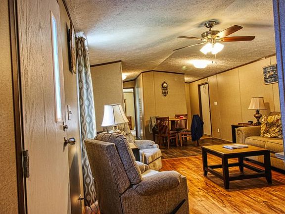 Charming 3 bedroom 2 bath single wide is a great starter home or Investment property. It is situated on 3.97 acres and is on permanent foundation with vinyl siding and windows. There is a pond on the property that has been stocked with minnows for fishing bait. Large covered back deck for entertaining. 10 minutes away from 2 boat docks. All the furniture, gas grill and deep freezer stays with the property. **Buyer to verify all information measurements before making an informed offer.**