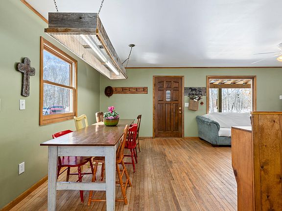 Welcome to beautiful country living. Nestled between water and pasture, this 4 bed 2 bath home features natural wood finishes, a four-season porch, and an outdoor wood boiler to compliment the forced air. Ample garden space and plenty of breathing room.