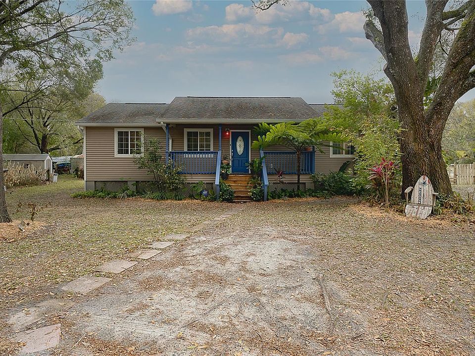 Beautiful 3/2 on just over an acre of land. Stepping onto the porch and through the front door you are immediately greeted by the spacious living room. Just past the living room is the dining area which lies directly adjacent to the kitchen which includes a range, hood, and fridge/freezer combo with an ice maker. Moving on to the master bedroom you will notice an upgraded ceiling fan and a beautiful sliding barn door. The master bath as well as the additional bathroom both have shower and tub combos. The rest of the home features two additional bedrooms and an inside laundry room - located adjacent to the kitchen. The backyard is fenced so you can let your animals run around. Additionally there is a fire pit and two storage sheds. This one won't last long - call for a private tour at your convenience.