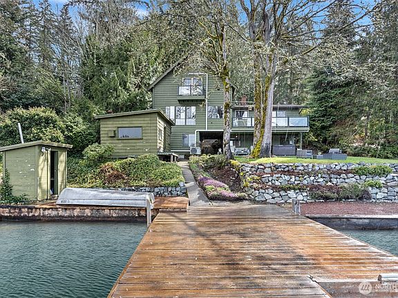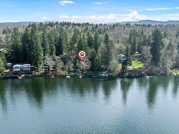 Western Facing Waterfront Oasis! You'll be making a lifetime of precious memories here. Spectacular VIEWS! Private dock, jetski, waterski, kayak, swim! Every part of this home has been updated or remodeled-from the bright kitchen to the glorious, tall vaulted ceiling master bedroom. Relaxing beauty all around and feels like being on vacation everyday! Main & upper floor have air conditioning. This charmer is truly a dream property. Come home to hearing frogs, seeing deer casually cross the road & bald eagles soar over the lake. Deadend st., huge lot with privacy. Half acre of land on beautiful waterfront. Only a little over an hour's drive from Seattle&Bellevue. Can't get better than this-Come home to this very special property-Be amazed.