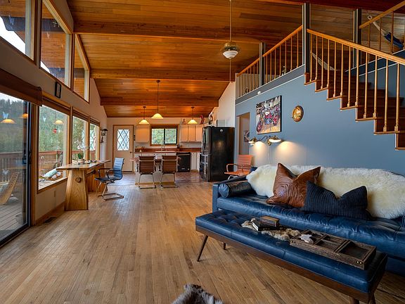 ** 1% Lender Credit ** towards this coveted Hawk Creek Home, situated on over 18 sprawling acres, with the added advantage of bordering 640 acres of state land, this property offers an unrivaled location. The home boasts new appliances, a recently updated well system, & abundant space. Upstairs is the primary bedroom complete with an attached 3/4 bath. You'll find another full bath, a spacious living room w/a breathtaking view, a cozy fireplace, a pellet stove, & a versatile loft area. Downstairs discover a generous family room, a second bedroom w/a walk-in closet, another 3/4 bath, a fireplace, & ample storage space or 3rd bedroom.Outside, you'll appreciate the convenience of a 2-car garage, a lean-to carport, a fenced yard, a chicken coop, & a greenhouse. Nature enthusiasts will be delighted by the abundance of wildlife on the property, & the opportunity to hunt on their own land. Take the time to explore the vast acreage, as it offers plenty of usable land and an incredibly peaceful and secluded ambiance.