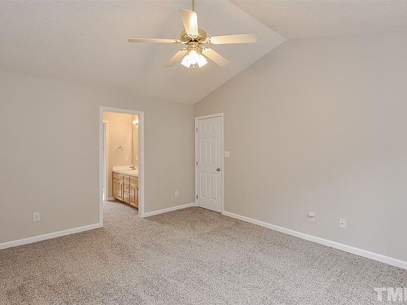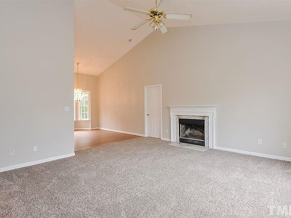 This Clayton one-story home offers a fireplace, vaulted ceilings, a walk-in closet in the master bedroom, and a backyard storage shed.