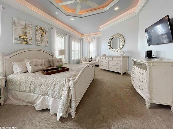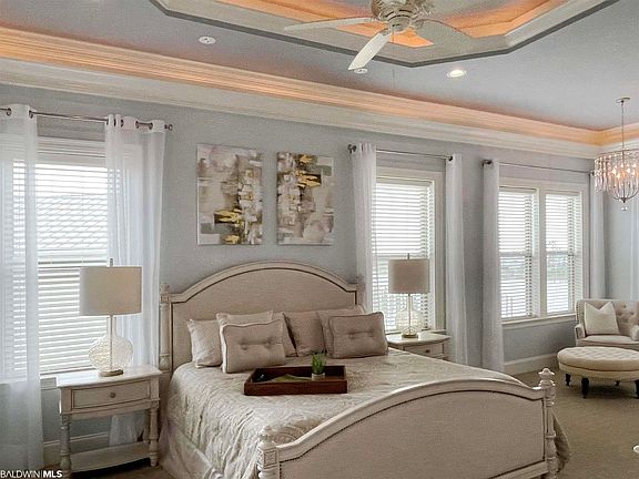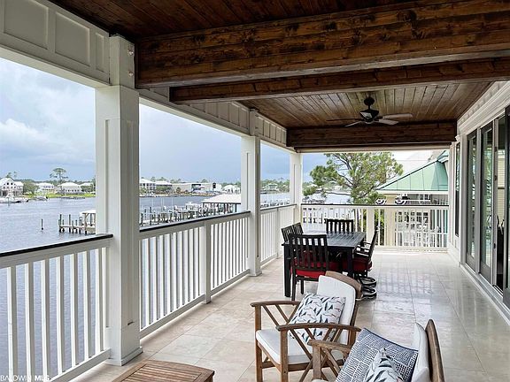 You can have it all. Something for everyone! Great custom built primary or rental home in the heart of Orange Beach. Gated, deeded 18 x 36 boat slip & deeded beach access, pool and tennis & sits directly on Cotton Bayou. Luxury is everywhere in this 2018 Gold Fortified, 4100+/-sf, direct Cotton Bayou front, furnished home with elevator. 6 Brs, bunk room, 5 baths & two 1/2 baths. As you enter from the gorgeous double 8' wooden doors or come in from the double garage, you enter an elegant vast foyer with soaring ceilings adorned w/deep crown moldings and a staircase with iron railings. An elevator is there to get you and your gear from one floor to another. The ground floor has an outdoor kitchen w/a lovely seating area and 1BR ensuite. The second floor has a substantial den w/cute bunk room, game area, wet bar and large porch overlooking the water. 2nd floor also has 3 Brs, 2 baths (one is the jack n jill) and a separate 1/2bath. The incredible top floor has a great room with 10 & 12 ' coffered ceilings, magnificent crown molding, a glass tiled electric fireplace, 1/2 bath and another large porch with expansive water views. It's kitchen is stunning with custom cabinets & backsplash, farm sink, granite countertops as well as a spacious pantry. An immense dining area for entire family. The MSTR ensuite is exquisite w/ a private sitting area resplendent w/intricate ceilings. The sumptuous MsrBa will thrill all who see it. Fire Sprinkler system for safety. This home comes with a large 18'x36' boatslip on the outside of marina directly in the center by the bath house w/fish cleaning station. Cotton Bayou is quick out to the pass. You can get to anywhere from here by boat. There is first come first serve boat trailer storage. The deeded beach access is directly across the road to the glorious beaches of the Gulf Of Mexico with its sugar white sand and emerald waters. Play tennis then cool off and sun by the pool, or sit in the shade of its gazebo.