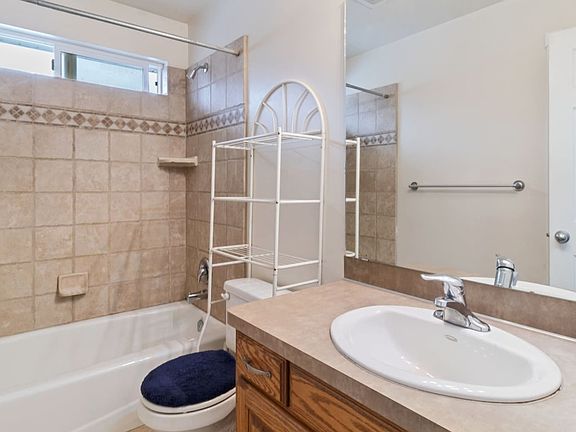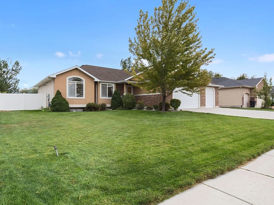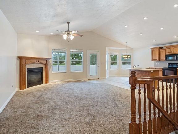 Great rambler in a great neighborhod. Has new roof, rain gutters, upstairs carpet and AC. It has six bedrooms, three full baths with a jetted tub. Two large living rooms with gas log fire places. A large three car garage with an extednded bay. Fully landscaped yards served by an automatic underground sprinkler system. The back yard is feneced with a white vinyl fence. The home is west facing with a great view of the mountains to the east and a shaded back yard with a covered patio.