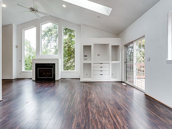 - Features: Bookcases, Ceiling Fan, Fireplace, Skylight, Laminate Flooring, Vaulted Ceiling