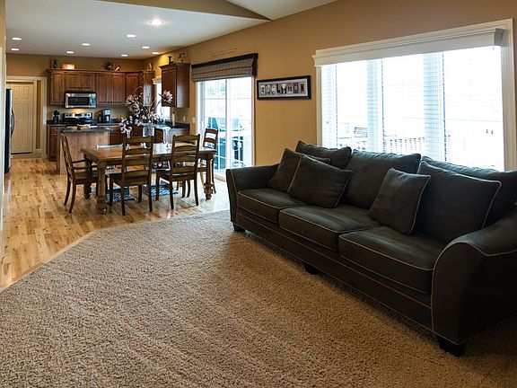Beautiful west-end ranch walk-out with open concept. Hickory hardwood flooring in entry and kitchen. Kitchen features an abundance of cabinets including large pantry and island. All stainless steel appliances remain. Deck off dining area. Vaulted ceiling in living room and custom gas fireplace. Main floor laundry. Master BR features private bath and large walk-in closet. You will love the large family room downstairs plus a full bath and 4th bedroom. An unfinished room could be a future craft/hobby room or 5th non-conforming bedroom. Walk-out to patio and level yard. Large storage room for seasonal items or lawn equipment. This home is very clean and well cared for. Great neighborhood--call today! No showings until 4/21/2017.