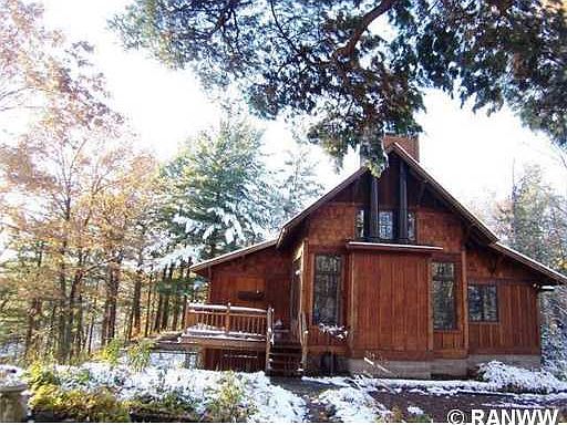 Meandering Clam River boarders your property with spectacular views from screen porch to multiple patio and decks, roaming wildlife, mature woods and natural landscaping with walking paths. This custom chalet boasts charm and style from soaring pine ceilings, authentic barn wood floors, huge windows/doors, fireplace, in-floor heat (2 levels), main floor master bed and bath, 1/2 bath with stack laundry. Flow down wood steps to w/o basement featuring mahogany wainscoting, family room boasts sunlight, bath, bedrooms, workshop . . a must see.