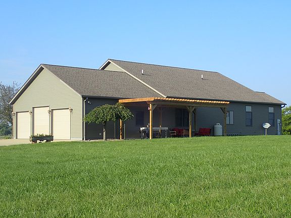 Highly efficient, custom-built brick & vinyl sided, 3-5 bedroom, 3 bath ranch home situated on 12 acres acreage includes some woods . Enjoy great country views from this home complete with large, Anderson windows, hardwood flooring & trim, ceramic tile and a hickory cabinet kitchen with breakfast bar. Oversized master bedroom with impressive master bath complete with custom cabinetry, separate walk-in closets and marble counters. Spacious, finished lower level with gameroom and wet bar plus potential for bedrooms, if you want. Geo-thermal heat/cooling unit and an excellent water filtration system with water drawn from lake. Large 3 car garage with hot & cold water. One & a half acre stocked lake with beach. A must see home that will not disappoint.