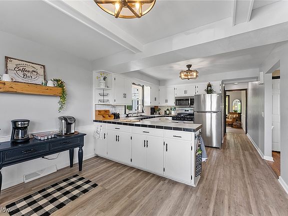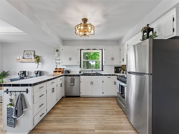 This charming fully updated 2-3 bed, 1.5 bath Canfield home is move-in ready and waiting for you! Sitting on just over an acre this charming home welcomes you into a cozy living room with fireplace and beautiful hardwood floors. From the living room is the formal dining room with built-ins that also connects to the eat-in kitchen. The kitchen boasts white cabinets, stainless appliances, updated backsplash, and desk space. Down the hall you’ll find the updated full bathroom with new vanity and tiled shower and the largest bedroom/bonus room! This room has private access via French door to the partially covered back deck that overlooks the gorgeous backyard with firepit area. The second floor of this home offers 2 bedrooms and a half bath. The waterproofed basement features walk-out and has been updated with a new sump pump with backup battery and wifi connectivity, glass block windows with vents, recessed LED canned lighting, farmhouse mop sink, and HWT. The icing on the cake is the brand new 32x28 garage with 12 foot ceilings with 100 amp service, 30 amp RV outlet and metal roof. Garage doors are 10x10 with shaft drive garage door openers with wifi! Additional updates include: light fixtures, front fence, landscaping with Green Giant privacy trees, concrete apron, roof/gutters/soffits (2023), porch slope, French drain, electrical panel 200 amp (house), Gordon Bros reverse osmosis water system, septic (2022), deck/patio (2022), windows (2020/2024), AC (2022). A one year home warranty is included for your worry free purchase! Schedule your private showing today!
