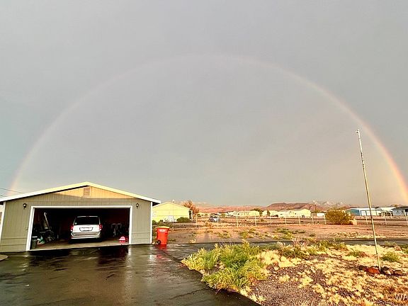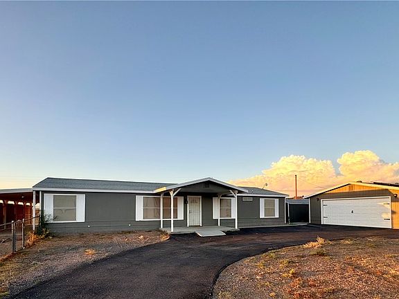 Welcome to this charming 3 bedroom, 2 bath home situated on over 1 acre of property! This RECENTLY REMODELED home is settled in the highly desired Walnut Creek Estates, just off of Historical Route 66 and only 10 minutes from Downtown Kingman and 15 minutes from other amenities. It's the perfect rural location without being too far outside of town and only a short drive to Oatman or Bullhead City/Laughlin. This quiet location offers a peaceful setting with gorgeous 360 degree views! The property is fully fenced with 3 sheds and a detached garage that is installed with a PAID OFF SOLAR SYSTEM. Power is established in 2 of the outdoor sheds. Inside, you will find an adorable modern farmhouse that was UPGRADED LESS THAN 5 YEARS AGO. NEW carpet in all 3 bedrooms and NEW hardwood vinyl flooring throughout the rest of the home. BRAND NEW matching light fixtures and ceiling fans with upgraded electrical outlets throughout. Both bathrooms have NEW countertops, toilets, faucets, and walk-in showers. In the master bathroom you will find dual sinks and a NEWLY installed garden tub as well as a walk-in closet in the master bedroom. Other upgraded features include all NEW baseboards and trim, NEW drywall and wall texture throughout every room with NEW modern wood doors. Faux wood blinds installed in every room, walk-in pantry, NEW dishwasher and microwave, lots of kitchen cabinet storage with new hardware and laundry hook-up inside. Two living rooms and an open floor plan with space for a dining table make for the perfect home to bring the whole family or to host holidays and events! Just off the kitchen is a FULLY ENCLOSED SCREENED IN PATIO with BEAUTIFUL 360 FOREVER VIEWS, the parcel butts up to BLM land! Surrounding the home are fully covered porches and sidewalks. This home is located on the only paved street in the neighborhood with mail and grocery delivery services available. Bring your toys, RVs or animals to this horse property with tons of surrounding recreational trails for Razor rides or horseback riding!