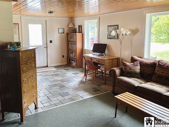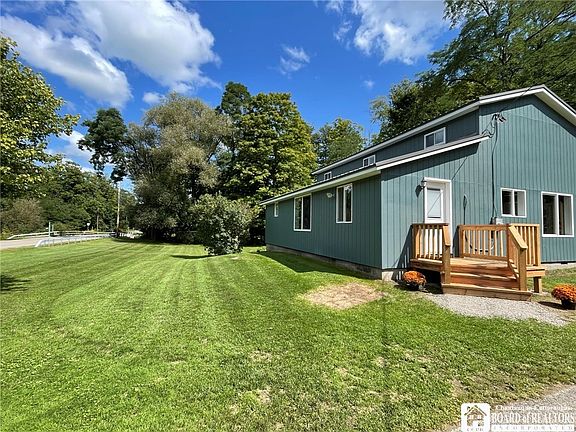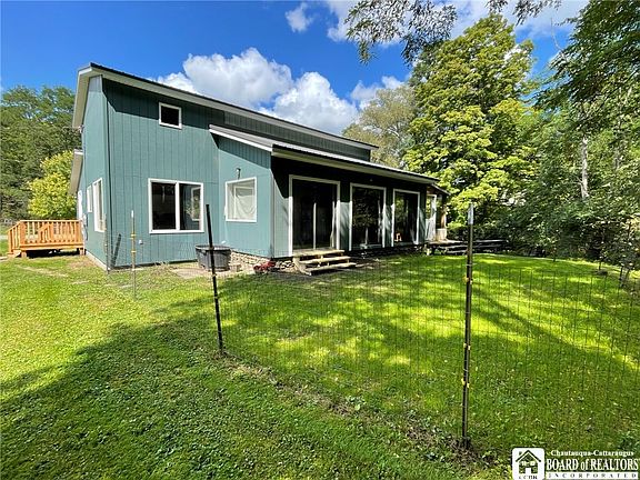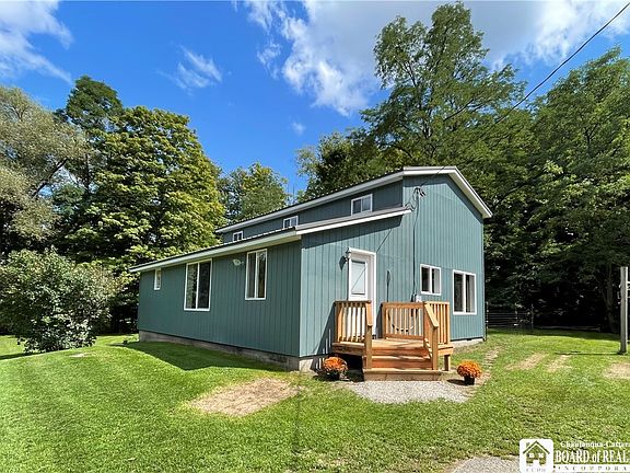$25,000 in upgrades recently done including the roof. Step into the front entry with slate flooring and open to the large LV/DR and KIT. Sliding doors off the back of the house lead to a three season enclosed porch and a sunroom. The first floor bedroom is up two steps and has double closets. The 3/4 bath has a tile floor and the laundry is conveniently located on the first floor. A stone non-working fireplace that is ready to be made usable. Upstairs you will find and very large landing (18x23) that could easily be made into two bedrooms with three closets. To the right is a second bedroom with hardwood flooring and closet. Both rooms have T&G pine ceilings. Outside is a large 40x40 shop with overhead doors and electric service. A partial fenced in yard and a creek. Across the street is two additional parcels with a small barn and a creek. Partially fenced in and ready for the horses. There are 2 electric meter and one gas. Budget gas is $94/mo & elec is $100/mo. All appliances star. Easy access to I86, Allegany State Park, Onoville Marina, Snowmobile trails and 30 Minutes to Holiday Valley.
