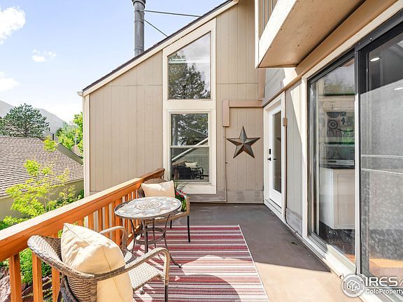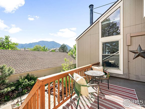 Views, Views, Views!! Beautiful and Breathtaking expansive views from every window of Flatirons and Devil's Thumb and steps away from Open Space. Classically designed 2 level living with dramatic vaulted ceilings. New fully reconfigured and permitted kitchen with solid wood semi custom cabinetry, eased edge concrete quartz countertops, apron sink, floating shelves, LG microwave, and dual convection oven. Super unique Bespoke glass paneled 4 door Samsung refrigerator with beverage center. Make sure to check it out in the pics! Custom 72" frosted glass aluminum pantry doors. Cool the entire home using the 4 head mini split cooling system. This is a $20-25K upgraded feature which is much needed during the summer months. First level powder room with new vanity, 42" cabinets for additional storage, and stackable washer dryer. 1 car oversized garage (#3) is large enough to store all that sports gear and park a car. Wood burning fireplace that is cleaned and inspected annually by the HOA. Modern design with gorgeous wide plank acacia engineered hardwood floors throughout main level and new low pile cut carpet. LED recessed lighting, LOOX 24V undercabinet lighting, Lente fixture leading up the open tread staircase. Mini splits for heating and cooling with separate zones in the living, kitchen, primary and secondary bedrooms. Primary bedroom has THE MOST AMAZING views of Devil's Thumb. A bright and open second bedroom (or office) finishes off the second floor. The exterior of this home has a private and quiet Southwest-facing front deck with awe-inspiring views. Wonderfully landscaped with stone patio and low maintenance hardscape and plants. Neighborhood pool, water, trash and snow removal are all included in the HOA. Pet Friendly neighborhood that is lined by open space for happy strolls with the dog. Quick access to Shanahan Ridge Trailhead, Foothills Pkwy, Mesa Elementary, South Boulder Rec Center, bus line, Southern Sun, Whole Foods, and Table Mesa Shopping Center.
