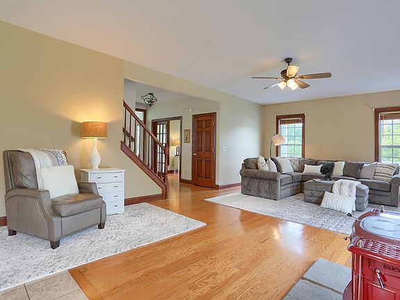 ** OPEN HOUSE TUESDAY, JUNE 30TH, 5-7:00 PM ** Country living at it's best with over 3900 square feet, 6 bedrooms, 3.5 baths. Sunlight abounds and living space galore with an open concept living room and kitchen area on the main floor perfect for large gatherings and a large family room in the basement complete with an extra kitchen. A large master suite and 3 additional bedrooms upstairs. Sit on your back deck and watch the wildlife with just over 6 acres, partially wooded with a creek for fishing and playing in the water. A fenced in pasture and 220 x 40 outbuilding with a tack room is perfect for any kind of livestock.