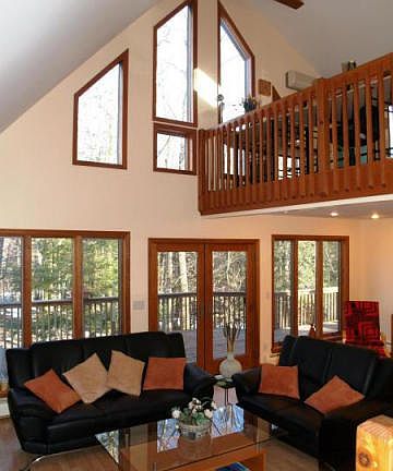 Huge, quality, custom built chalet with upgrades galore! This 3 bedroom, 3 bath home, features cathedral ceilings, 3 finished levels, A/C, a huge master suite with French doors, enormous jetted tub, seperate steam shower & upgraded modern fixtures, beautiful modern kitchen with maple cabinets, lighted glass upper cabinets & counter accent lighting. Loft, fireplace, family room, walk out basement,