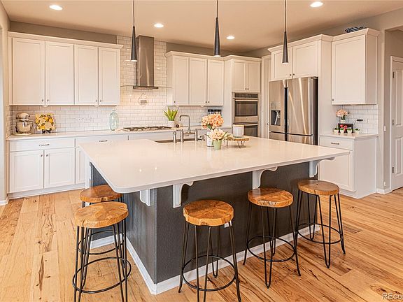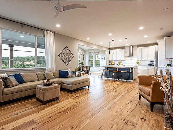 "Better than New" home situated on one of the Builder's premium lots. Meticulously maintained w/expanded floor plan & upgraded designer finishes.Tastefully decorated to suit any decor - modern farmhouse to contemporary. The foyer greets you w/wide plank Hickory floors enveloping the entire main level, with a private study & powder room. Not to be missed, the stunning Gourmet Kitchen - Upgrades to impress any chef & perfect for entertaining friends/family. Feature: Quartz counters/huge island that seats 6/Upgraded white 42" Shaker cabinets w/soft close & under cab. lighting. Beautiful Subway tile back splash. Timeless Stainless Steel...Farm sink/hood/double ovens/5 burner gas cooktop/GE Profile & the refrigerator is included. Walk-in pantry & upgraded contemporary lighting. The "Double Feature" is the vaulted sunroom addition w/"Crystal Valley" views. Only a select few homes can enjoy this valley view from the comfort of their sunroom, all year long. Large Great Room w/gas log fireplace, large window view & wood flooring. Step out to the covered patio w/recessed lighting, privacy wall/retractable gates, gas line for your BBQ & raised seating/playarea. Landscaping complete w/sprinklers/drip lines & its low maintenance. Second level offers a Master Suite & elegant Bath - double shower/seamless glass door/quartz/tile & closet shelves. Sunny secondary bedrooms with views. Full Bath w/higher cabinets/double sinks & tile. Loft (could be 2nd office, play room or add 4th bedroom). Convenience w/upper Laundry Room - built-ins & huge farm utility sink - bathing kids or pets! Unfinished basement w/9' ceilings/Radon Mitigation/Insulation/bath stubs & large windows. So much attention to detail - high ceilings, taller doors & rounded corners. Check out the garage...workbench/sealed floor & tall cabinets. Move in and enjoy this home now, all the work has been done for you! This newer Community offers a Recreation Center/Pool/Fitness/Parks & 5 mins. to quaint Downtown Castle Rock.