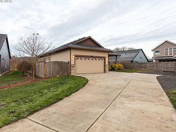 Gracious one-level living in popular South Scappoose cul-de-sac neighborhood of newer homes! Thoughtfully designed great room home welcomes you with spacious living area, open kitchen w/eating bar & handsome maple cabinetry, 3 comfortable bedrooms plus den, master suite has private bath & walk-in closet, new carpet throughout. Backs to peaceful green space, huge 9,512 square foot fenced lot, front yard sprinklers, RV parking too!