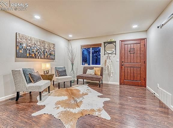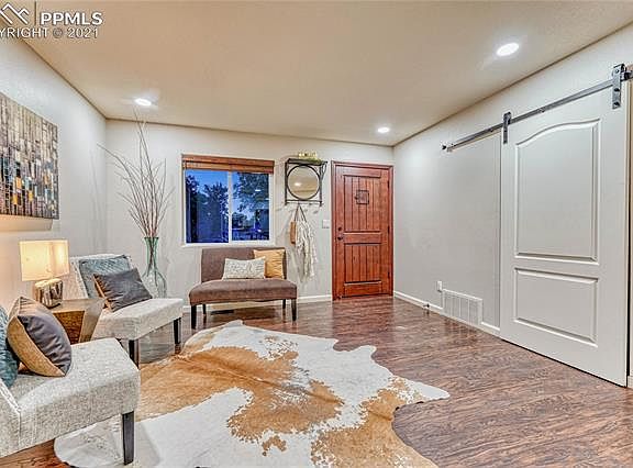 This cozy cottage is nestled at the end of a quiet cul-de-sac and has uncommon extras you wont find in other homes in this price range. The goal of everyones Living space is to have a warm, relaxed ambiance as you share life with friends & family-. What brings people together? Either a really beautiful meal or a really warm fire. Thats precisely what you have in this desirable open floor plan! Restoration Hardware color palette/vibe complete with gas stove/fireplace. Add to this, the desirable Transitional elements of recessed lighting(all on dimmers), gas stove & stainless appliances. Just open the kitchen door to add another element, outdoor living/dining spaces. A custom wood plank stamped concrete patio is the perfect place to practice your grill skills while Fido or kiddos romp in the privacy-fenced backyard. Enjoy watching the balloons float across the sky, launching (3 miles N/W of you) & landing in the parks & open spaces that surround your neighborhood during the Labor Day Lift Off weekend. Back inside youll notice the custom weathered wood walls in the Master bedroom & barn doors completing the Perfectly Pinterest look everyone is trying to create! The entire home has brand new wood laminate flooring. Can you imagine enjoying your morning or evening jaunt around Deerfield Park just 1 blk down the street? Taking in its Rocky Mountain & Pikes Peak Views is the perfect way to begin or end every day. Youll notice the uncommon sense of entry the minute you enter the driveway with its custom iron clad/wood Front & Garage doors. RV parking, on a concrete side-drive, is just inside the privacy fenced gate, is another fun uncommon extra-Ft. Carson, Peterson AFB, Bluestem Prairie Open Space/Big Johnson Reservoir, and Colorado Springs Airport are just minutes away. A detailed list of updates & their cost will be available to you when you Come Take a Look Inside!