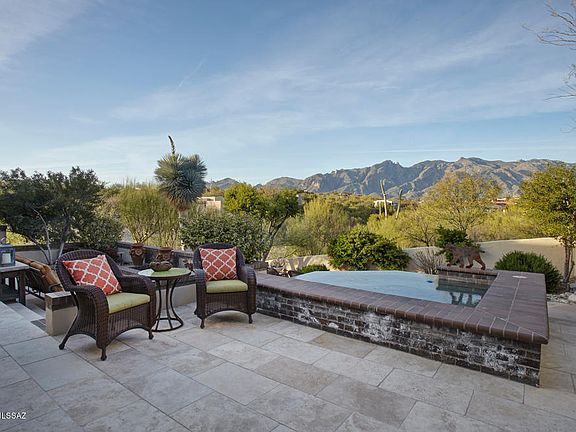 Designed & built by Neil Murphy of Tucson's renowned Tyson Murphy builders, this home melds luxury with the casual Tucson lifestyle sought after by the most discerning buyers. The 4BR/3BA main house features a great room with a ''window wall'' framing the Catalina Mountains, beamed tongue and groove ceilings, separate DR, gourmet kitchen and delightful family room. The kitchen w/custom cabinetry, has Brazillian slate counters, a 6-burner Wolf range, steam convection oven, Sub Zero refrigerator and 2 drawer refrigerators. The 1BR/1BA guest quarters w/separate entrance, has a spacious LR/DR, kitchen, private patio. North facing tiered patio is perfect for entertaining & features a negative edge hydrotherapy spool, ramada with outdoor kitchen, custom fireplace, TV & a cozy fire pit area!
