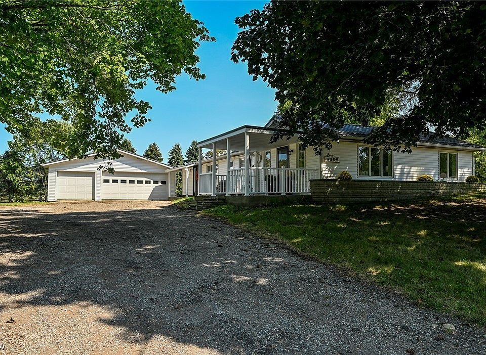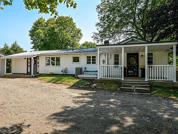 Location, location, location! Do not miss this beautiful ranch located in the heart of Hartville. This 3 bedroom, two bath is set on a sprawling 1.3 acres of land with a 6 car garage. Enjoy the convenience of first floor living at its finest! The updated kitchen is adorned with granite countertops, new cupboards, and new stainless steel appliances. The primary bedroom has an updated ensuite. Enjoy the gorgeous views of the country in your cozy living room. The sleek metal roof adds both durability and style, ensuring your home stands out. The list of updates is extensive, new siding (2024) newer steel roof (2022), furnace (2024), AC (2024) Remodeled Kitchen (2024) Remodeled bathrooms (2024) New Carpeting (2024) New Vinyl Flooring (2024) Septic (2017) This home is sure to impress! Call me for an exclusive showing today!