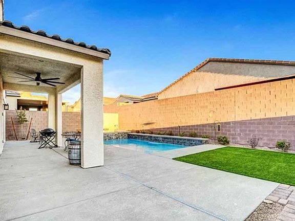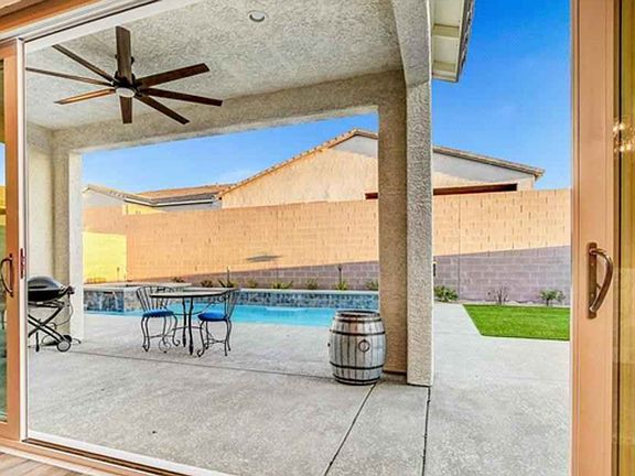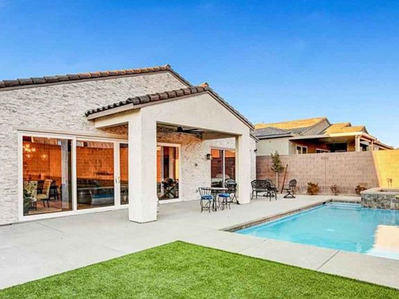 Gorgeous Toll Brothers single story home! Upon entry you're greeted with vaulted 10 ft ceilings, upgraded paired with luxury vinyl plank flooring throughout! Gourmet kitchen offers 36" gas cooktop, stainless steel appliances, built-in oven and microwave, massive kitchen island with granite countertops and ample cabinets! Master suite boasts spa like amenities! 20 ft sliding doors to a backyard designed for entertaining, equipped with sparkling pool/spa, covered patio and grass turf! This home is features 3 bedrooms and 2.5 bathrooms with a 3 car garage with epoxy floors and overhead storage racks. (Tenant to add $135 per month for pool service.) Application fee $25 per adult non-refundable. Any incomplete applications may be rejected. All applications are subject to credit history, income verification and rental history. Approved applicant to pay $150 non-refundable lease prep fee.