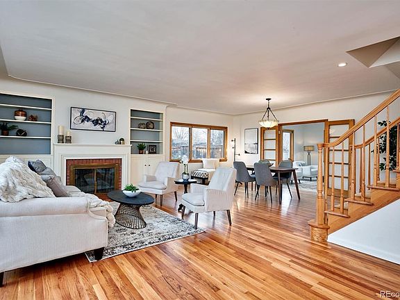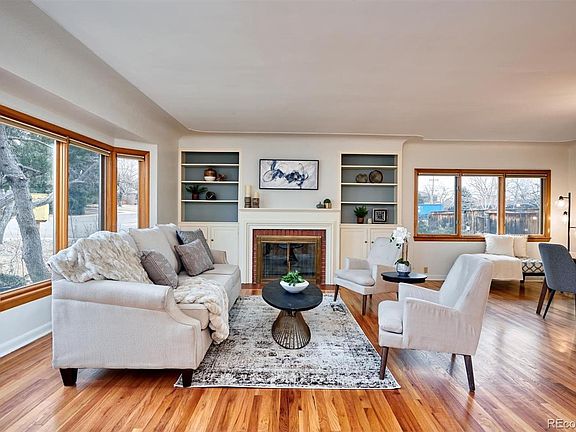 An incredible value as a multi-generational home or to simply make the most of your next purchase, this 1950s ranch-inspired University Hills residence is too good to miss! Updated and lovingly maintained, the dwelling sits on one of the largest lots in the neighborhood at 12,500-sq ft. Overlooking the tree-lined street, its covered entry leads you to a streamlined interior bathed in abundant sunlight by generously-sized, wood-trimmed windows. Additions done by the owners in 1998 (Family room, extended kitchen, & large main floor bedroom/office) and 2006 (2nd story). Upon entering the living room, discover an elegant brick fireplace flanked by beautiful built-ins to display your prized memorabilia. Rich wood flooring continues into the open-concept dining area where French doors reveal a versatile step-down family room with vaulted ceilings and skylights. A delight for the avid cook, your sunny kitchen highlights stainless steel appliances, Scandinavian-designed cabinetry, gleaming quartz countertops for plenty of prep area, and a marble mosaic tile backsplash. Greet the day with a cup of coffee in its adjoining breakfast nook, or head outside to soak up the sun on the patio. Relax in the comfortable proportions of the well-sized bedrooms, including a secondary suite commanding west-facing views and a main-level retreat that conveniently accommodates overnight guests. Topping them all, the primary suite treats you to a balcony, a walk-in closet, and a spa-inspired 5-piece ensuite with a double vanity, soaking tub, and a separate shower. Other notable features include an expansive fireplace-warmed office, a 1,549-sq ft basement with a bonus room, bath, and workshop, plus an oversized 2-car garage with a workbench. With Eisenhower Park and High Line Canal Trail nearby, this gem is a must-see. Come for a tour before the opportunity passes you by!