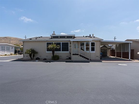 Instantly appealing to the most discriminating buyer, this modern triple-wide mobile home is situated in the desirable 55+ senior community of Rancho San Luis Mobile Home Estates in beautiful San Luis Obispo, just 10 minutes from the Pacific Ocean. Located on a corner lot, the landscaping is low-maintenance and water-conserving. This single-level home has an open, light-filled floorplan, a large living room with a gas fireplace, wide doorways and hallway, skylights, plenty of storage, cathedral ceilings with clerestory windows, central air conditioning, ceiling fans in the bedrooms and living room, and dual pane windows throughout. Gourmet cooks will love the sizable kitchen with ample storage space. The roomy main bedroom features a walk-in closet plus a second closet, and the attached bathroom boasts a soaking tub plus a beautiful tiled walk-in shower. The covered carport is generously sized, and two sheds are included. Rancho mobile home park is small animal friendly, has a clubhouse with kitchen, pool, hot tub, wide streets, and is close to transportation. Trader Joe’s, coffee houses, restaurants, Food 4 Less, and the Public Market are only blocks away; the regional airport, train station, and downtown are nearby. Residents must be park approved and the rent to the new owner will be approximately $885.00, which includes water, sewer and trash. This may be your permanent home or a vacation home. So many possibilities await you in this quality home! Information not guaranteed but deemed reliable.