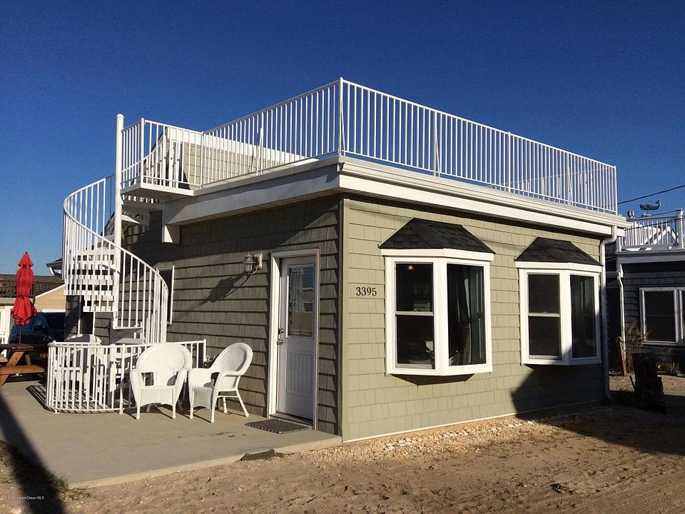 One house back from the ocean this house was built new in 2011 and affords wonderful ocean views from the 15'x20' roof-top deck! Some features include central air and heat, large bathroom with corner shower, extra half bath off master bedroom, ceramic tile flooring throughout, granite counter tops, pull down attic stairs for extra storage, bay windows, cedar impression vinyl siding, and concrete patio for outside entertaining. House is hardwired for indoor/outdoor speakers. Leased land for great tax write-off.