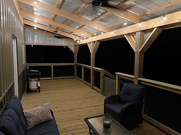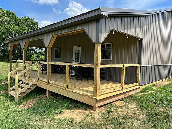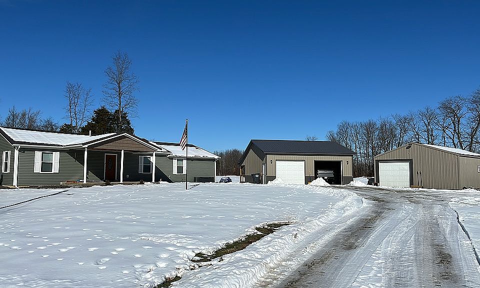 Stick built home on 20 acres woods creek a lot of wildlife two garages 30x30 with 10x30 deck and a 24x36 garages heated house has went through an update. Roof on house and one garage is 5 years old vinyl windows back door and gutters are also 5 years old house has 200 amp service newer appliances. Smart thermostat smart garage door openers water softener in craw space has what can be used as storm shelter under front porch 6 ft deep concrete that measures 17 ft long 9 ft wide. House is all electric city water newer havc system and two ponds new pond was dug about 10 months ago will be about 16 ft deep and 1/4 acre