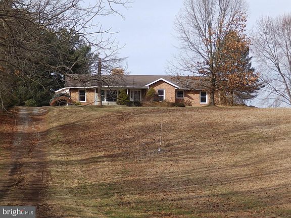 All Brick, 3 bedroom, 2 full bath rancher off the beaten path! There's a living room , formal dining room, kitchen and family room with woodstove on the main level. The kitchen has access to the attached oversized 2 car garage. Also on the main level are three bedrooms, one of which is quite large (was originally 2 bedrooms) and has a bath attached. The lower level is mostly finished and has a wet bar, a brick fireplace, a woodstove with stone hearth and a large utility room with laundry. Wonderful views of the countryside from this 1.34 acre lot. This home may be perfect for a renovation loan! PLEASE use the dirt driveway not the neighbors driveway.