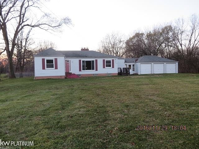 Nice ranch has spacious living room with hardwood flooring, shelves, & cozy natural fireplace! Kitchen with white cabinets & large dining/nook area. Good size bedrooms and 1-1/2 baths! Partially finished basement with dry-bar & 2nd natural fireplace! Breezeway attached to the home & 3 car attached garage! All this & located on 3.38 Acres country in the city! "Bank Owned Foreclosure" "Not a short sale" Easy, quick purchase process" $1,000.00 EM Deposit w/offer. Subject to Bank Addendum.