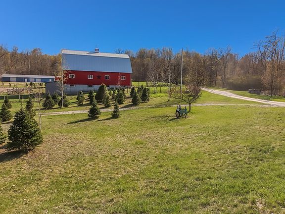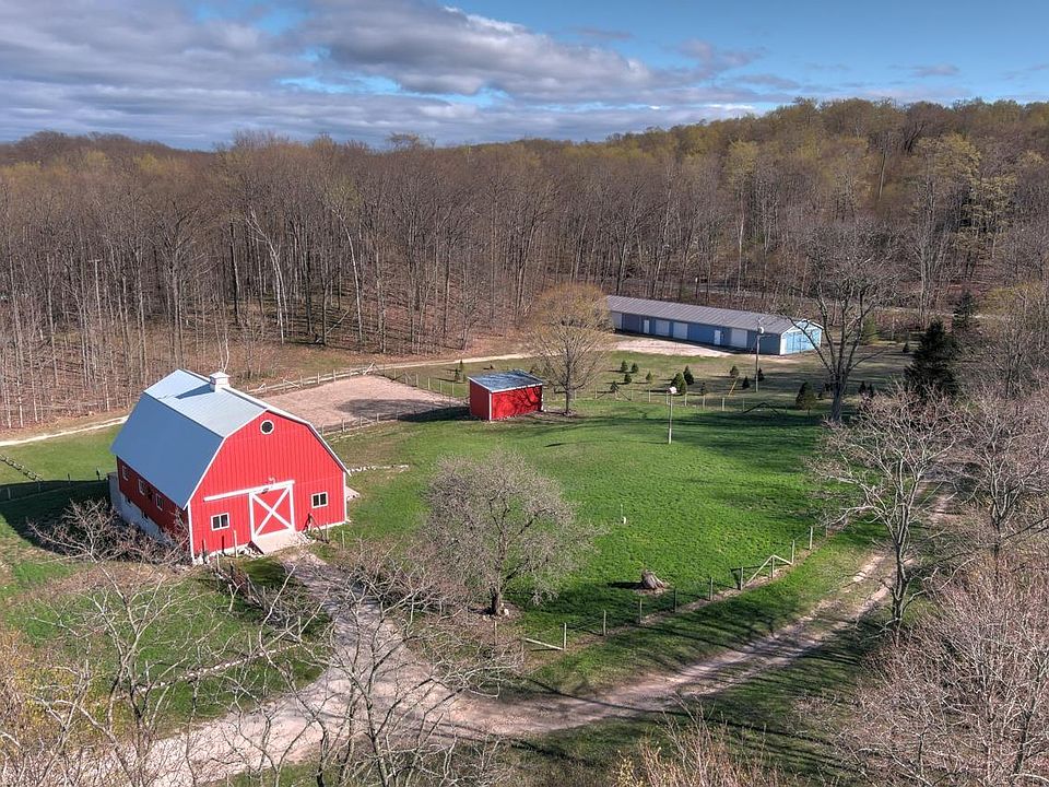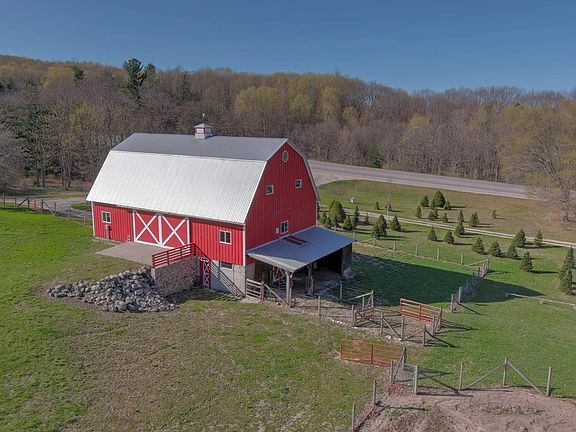 You may have driven by this red barn for many years and maybe even purchased fresh farm eggs here. This 36 x 56 authentic post-and-beam barn reminds us of an era we should never forget. The barn on the family farm was the foundation and symbol of strength and determination of this great country. The American barn's re-birth is here nestled on over seventeen rolling wooded acres outside of Frankfort in beautiful Benzie County. As you enter the main floor, the hand-hewn logs, large post and beam frame will leave you in awe. Black Locust trees from the property were milled to create the pins used in the barn's construction—also, timbers from the property were hewn to form the floor joists. There is even a loft overlooking the main floor from above. The barn's lower-level features radiant in-floor heat, four stalls, a chicken coop, an office, a restroom, a mechanical room, and a feed storage area. The property also features a 32 x 120 pole barn that is perfect for all your storage needs. As they roam this land, your animals will enjoy a fenced-in paddock and large run-in shelter. If you love a countryside setting and appreciate quality construction, you'll want to see this lovingly maintained barn. Zoned Rural Preservation, there are many options available within the Zoning Regulations.