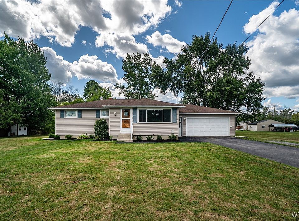 This charming countryside ranch is the perfect place to put down roots. Nestled on nearly an acre in the Alexander School District, the home offers 3 bedrooms, 1 bath, and light-filled living spaces with beautiful hardwood floors complemented by LVT plank. The cozy living room features a pellet stove, while the open kitchen/dining layout makes gatherings easy. Step outside to enjoy a spacious deck overlooking the wide corner lot—complete with space for a garden, chicken coop, and plenty of room to roam.