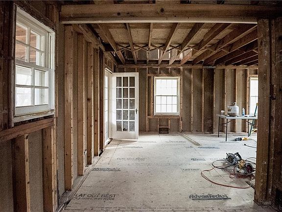 Calling all home renovation lovers! This adorable cape cod style house is only 1.3 miles from Skaneateles village center. The home is a blank slate, has been gutted and is waiting for you to put all your personal touches on it. The brick fireplace is the gorgeous centerpiece of this cape. The open spaces, detached garage, and dormers are charming parts of this property that make it stand out from typical gut rehabs.